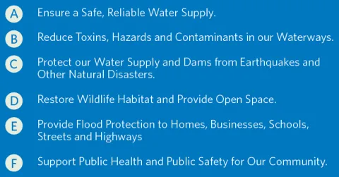 The projects listed here were part of the 2025 season’s proposed work. Other work, including minor maintenance, riparian planting, invasive plant removal, and other vegetation management projects, occur year-round. The proposed 2025 project sites are listed to the right. A copy of the 2025 SMP mailer is available to download. Notices from previous years and important creekside information are available in the "Reports and Documents" tab.