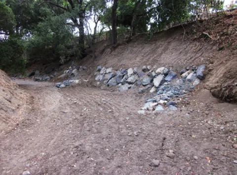 High and sustained water flows can cause extensive damage to creek banks, eroding existing flood protection improvements and natural elements. Repairing creek banks also helps protect neighboring homes and property from damage.